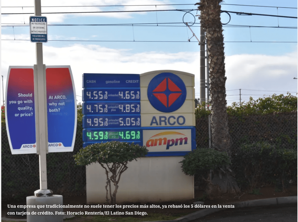 SAN DIEGO.- Continuando la inestabilidad de precios que rigió durante casi todo el 2021, el precio por galón de gasolina regular subió dos décimas de centavo en el condado de San Diego para situarse en $4.631, su monto más alto para terminar un año.
